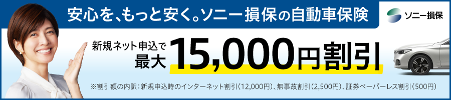 ※株式会社クレディセゾンが選定したソニー損保の自動車保険をご案内しています。